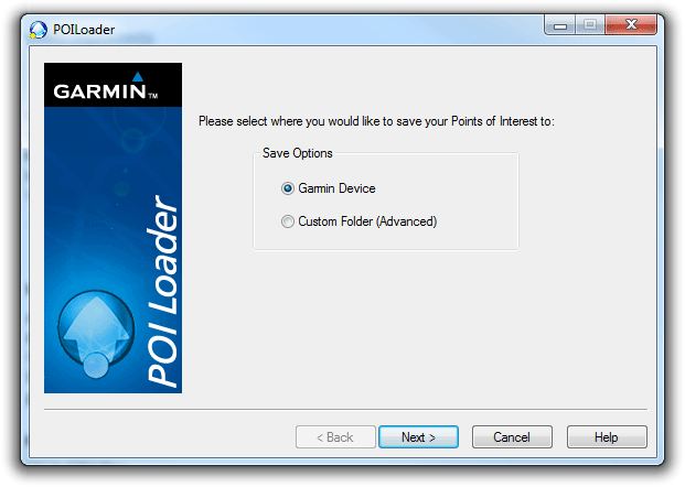 - Select 'Garmin Device' and click 'Next' to save the POI Dealer List to your Garmin GPS device.