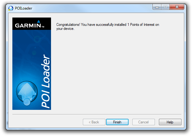 Click 'Finish' and check your GPS device for your new the POI dealer locations.