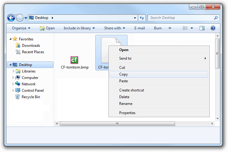 - With the mouse cursor over the file, click on the right mouse button. Now select 'Copy' from the menu.