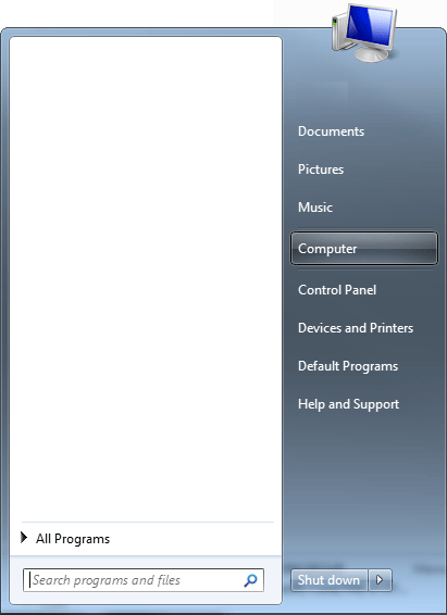 - Click on your Start Menu Icon and click on the button labelled 'Computer'. ('My Computer' in older Windows versions.)
